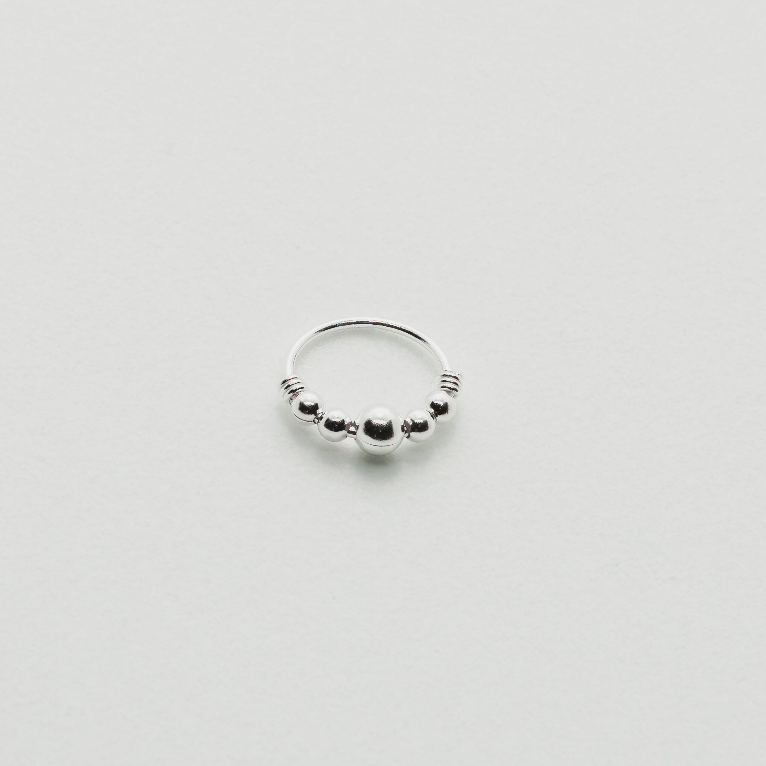 Argolla de plata 925 con detalle de esferas, diseño elegante y minimalista ideal para uso diario.
