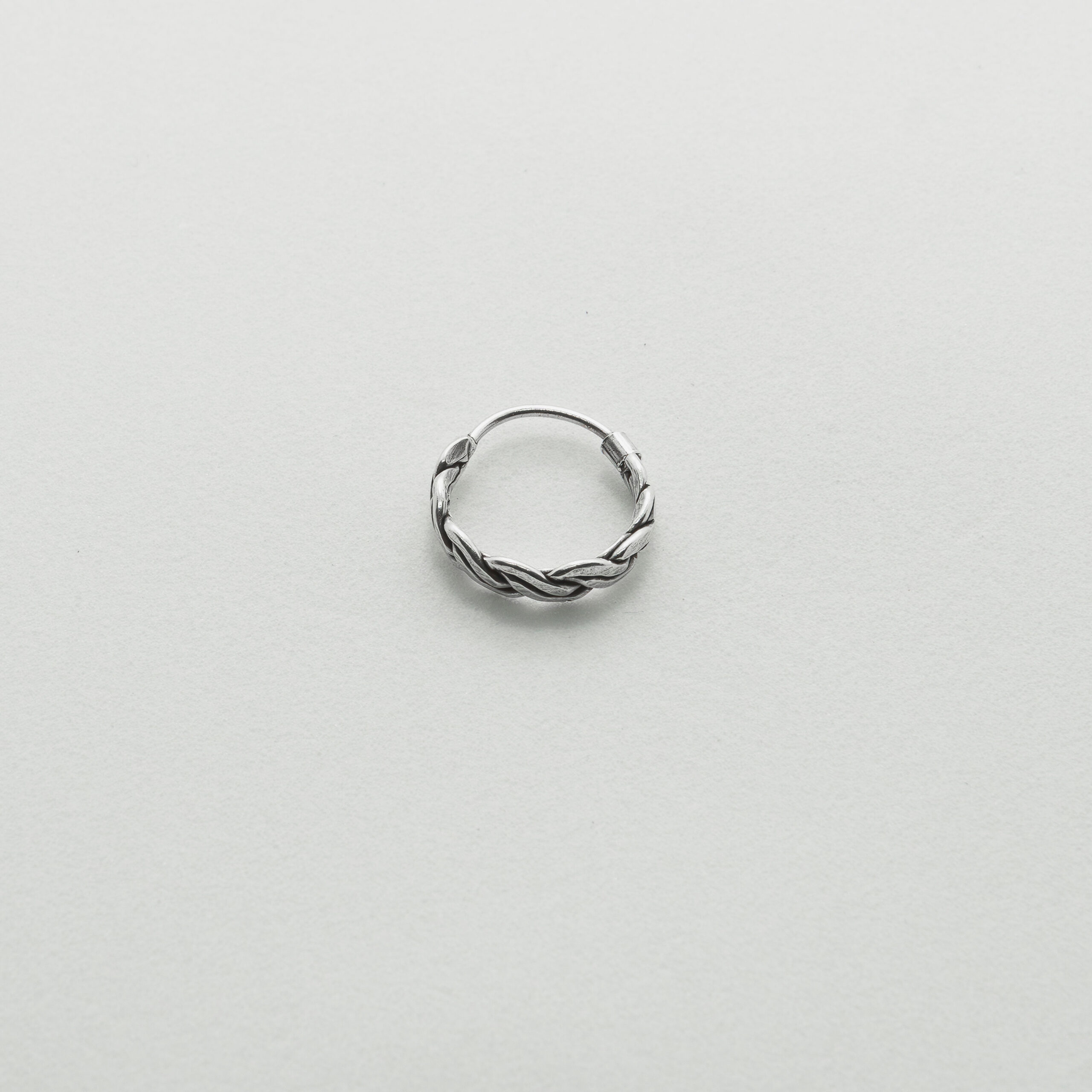 Argolla de plata 925 con trenzado robusto, diseño elegante y de carácter para uso diario.