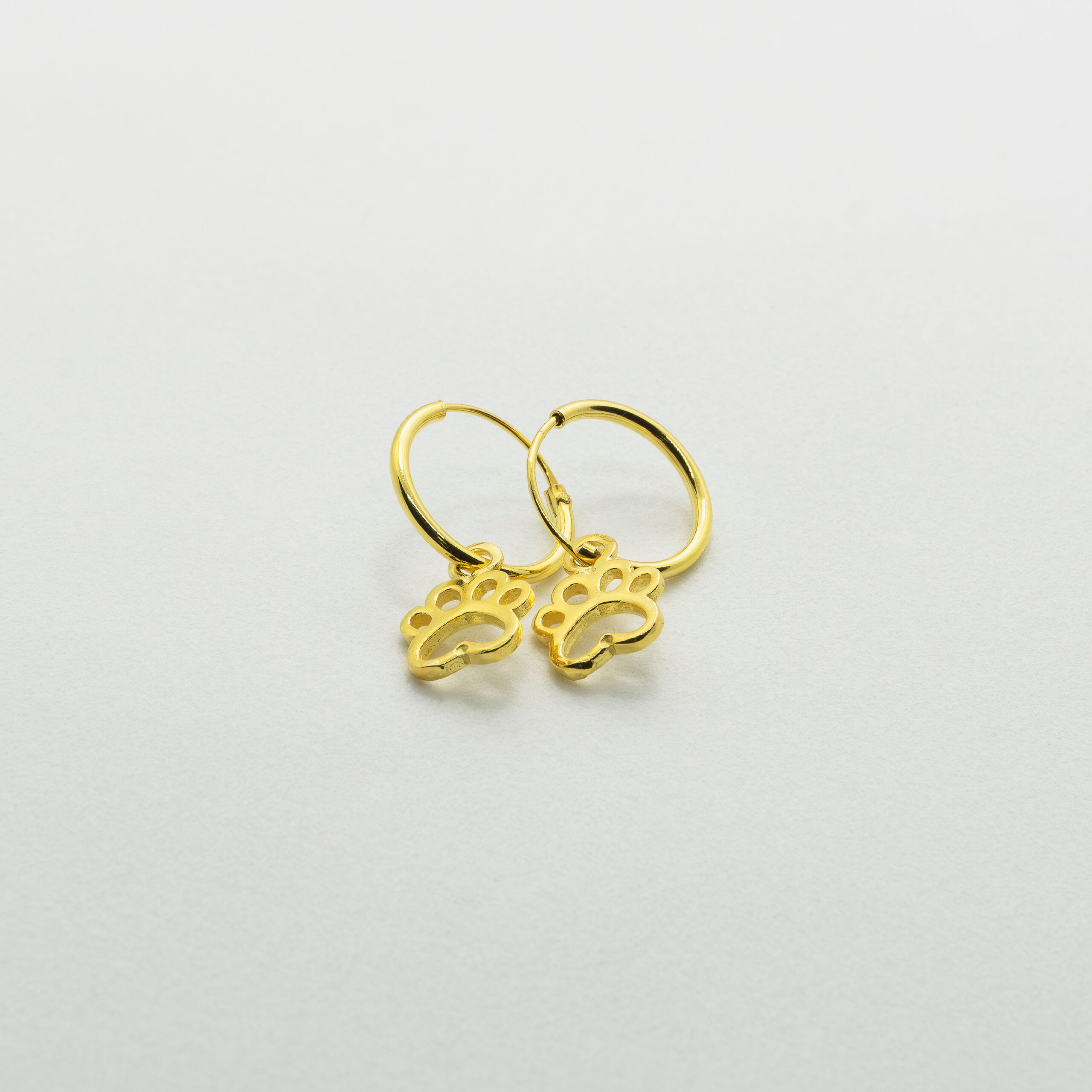 Aros tipo argolla de plata 925 bañada en oro con colgante de huella, diseño delicado y original ideal para amantes de las mascotas.